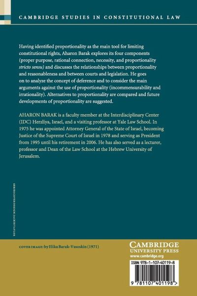 Part I. Constitutional Rights: Scope and Limitations: 1. Constitutional rights: scope and the extent of its protection 2. Determining the scope of constitutional rights 3. Conflicting constitutional rights 4. Limitation of constitutional rights 5. Limiting constitutional rights by law Part II. Proportionality: Sources, Nature, Function: 6. The nature and function of proportionality 7. The historical origins of proportionality 8. The legal sources of proportionality Part III. The Components of Proportionality: 9. Proper purpose 10. Rational connection 11. Necessity 12. Proportionality stricto sensu (balancing) 13. Proportionality and reasonableness 14. Zone of proportionality: legislator and judge 15. Proportionality and positive constitutional rights 16. The burden of proof Part IV. Proportionality Evaluated: 17. Proportionality's importance 18. The criticism on proportionality and a retort 19. Alternatives to proportionality 20. The future of proportionality.