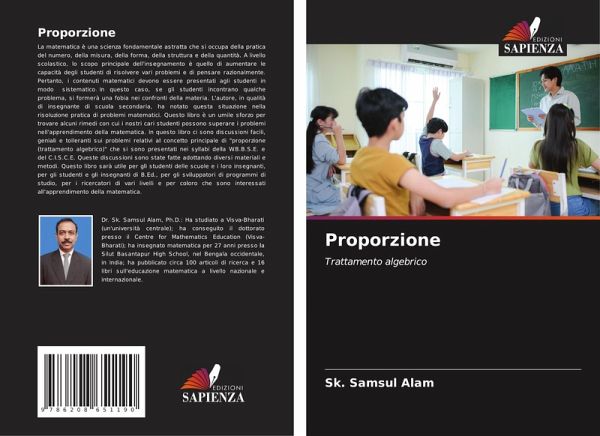 La matematica è una scienza fondamentale astratta che si occupa della pratica del numero, della misura, della forma, della struttura e della quantità. A livello scolastico, lo scopo principale dell'insegnamento è quello di aumentare le capacità degli studenti di risolvere vari problemi e di pensare razionalmente. Pertanto, i contenuti matematici devono essere presentati agli studenti in modo sistematico. In questo caso, se gli studenti incontrano qualche problema, si formerà una fobia nei confronti della materia. L'autore, in qualità di insegnante di scuola secondaria, ha notato questa situazione nella risoluzione pratica di problemi matematici. Questo libro è un umile sforzo per trovare alcuni rimedi con cui i nostri cari studenti possono superare i problemi nell'apprendimento della matematica. In questo libro ci sono discussioni facili, geniali e tolleranti sui problemi relativi al concetto principale di "proporzione (trattamento algebrico)" che si sono presentati nei syllabi della W.B.B.S.E. e del C.I.S.C.E. Queste discussioni sono state fatte adottando diversi materiali e metodi. Questo libro sarà utile per gli studenti delle scuole e i loro insegnanti, per gli studenti e gli insegnanti di B.Ed., per gli sviluppatori di programmi di studio, per i ricercatori di vari livelli e per coloro che sono interessati all'apprendimento della matematica.