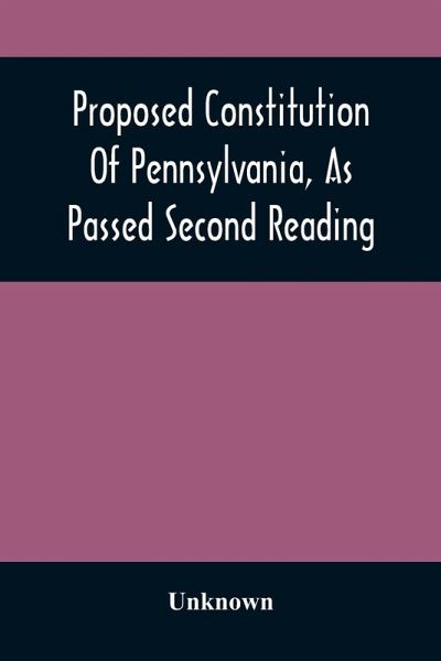 Proposed Constitution Of Pennsylvania, As Passed Second Reading has been considered by academicians and scholars of great significance and value to literature. This forms a part of the knowledge base for future generations. So that the book is never forgotten we have represented this book in a print format as the same form as it was originally first published. Hence any marks or annotations seen are left intentionally to preserve its true nature.