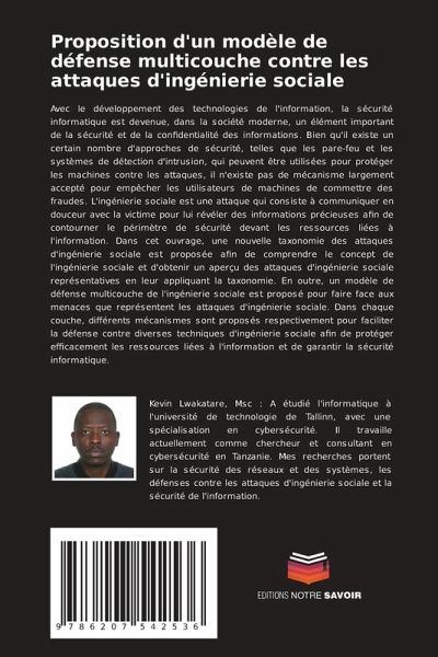 Avec le développement des technologies de l'information, la sécurité informatique est devenue, dans la société moderne, un élément important de la sécurité et de la confidentialité des informations. Bien qu'il existe un certain nombre d'approches de sécurité, telles que les pare-feu et les systèmes de détection d'intrusion, qui peuvent être utilisées pour protéger les machines contre les attaques, il n'existe pas de mécanisme largement accepté pour empêcher les utilisateurs de machines de commettre des fraudes. L'ingénierie sociale est une attaque qui consiste à communiquer en douceur avec la victime pour lui révéler des informations précieuses afin de contourner le périmètre de sécurité devant les ressources liées à l'information. Dans cet ouvrage, une nouvelle taxonomie des attaques d'ingénierie sociale est proposée afin de comprendre le concept de l'ingénierie sociale et d'obtenir un aperçu des attaques d'ingénierie sociale représentatives en leur appliquant la taxonomie. En outre, un modèle de défense multicouche de l'ingénierie sociale est proposé pour faire face aux menaces que représentent les attaques d'ingénierie sociale. Dans chaque couche, différents mécanismes sont proposés respectivement pour faciliter la défense contre diverses techniques d'ingénierie sociale afin de protéger efficacement les ressources liées à l'information et de garantir la sécurité informatique.