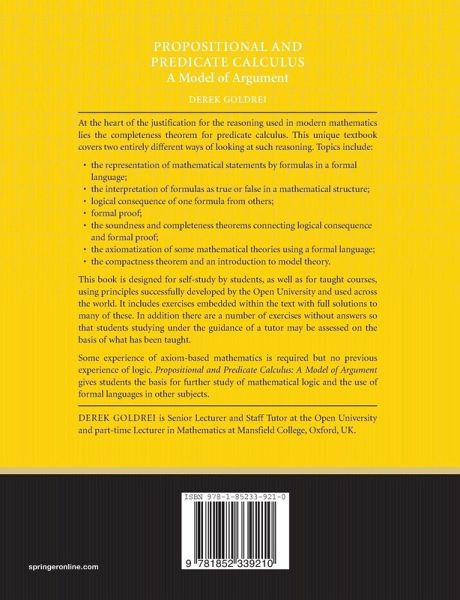 The book concentrates on the core material and provides a solid foundation for further study. The emphasis is on statements about mathematical structures, formal proofs representing mathematical arguments, and mathematical applications of results. The final chapter is devoted to some of the applications of the compactness theorem within Model Theory. It is specifically designed for self-study and features a wealth of exercises to encourage students to help develop results and consolidate understanding.