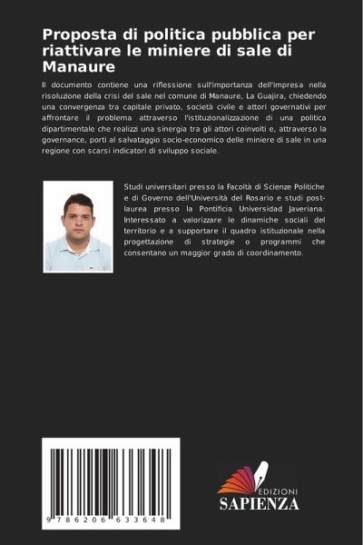 Il documento contiene una riflessione sull'importanza dell'impresa nella risoluzione della crisi del sale nel comune di Manaure, La Guajira, chiedendo una convergenza tra capitale privato, società civile e attori governativi per affrontare il problema attraverso l'istituzionalizzazione di una politica dipartimentale che realizzi una sinergia tra gli attori coinvolti e, attraverso la governance, porti al salvataggio socio-economico delle miniere di sale in una regione con scarsi indicatori di sviluppo sociale.