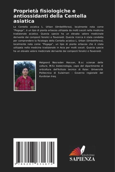 La Centella asiatica L. Urban (Umbelliferea), localmente nota come "Pegaga", è un tipo di pianta erbacea utilizzata da molti secoli nella medicina tradizionale asiatica. Questa specie ha un elevato valore medicinale derivante dai composti fenolici e flavonoidi. Questa ricerca è stata condotta per comprendere la fisiologia della Centella asiatica L. Urban (Umbelliferea), localmente nota come "Pegaga", un tipo di pianta erbacea che è stata utilizzata nella medicina tradizionale in Asia per molti secoli. Questa specie ha un elevato valore medicinale derivante dai composti fenolici e flavonoidi.
