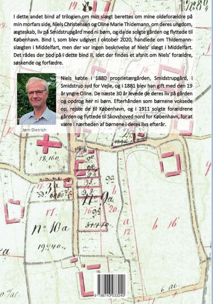 Denne bog er andet bind i trilogien om min slægt. Den første bog, som blev udgivet i oktober 2020, handlede om Thidemann-slægten i Middelfart, forfatterens tipoldeforældre og tidligere generationer i byen. I denne bog fortsætter beretningen om slægten og fortæller om mine oldeforældre Niels Christensen og Oline Marie Thidemann. I 1880 købte Niels proprietærgården, Smidstrupgård, i Smidstrup syd for Vejle, og i 1881 blev han gift med naboens datter, den 19 år yngre Oline. De levede 30 år på gården og opdrog her ni børn. Efterhånden som børnene voksede op, rejste de til København, og i 1911 solgte forældrene gården og flyttede til Skovshoved nord for København, for at være i nærheden af børnene i deres livs efterår. Endvidere berettes om børnenes liv og hvad de foretog sig, deres ægteskab og børn m.m. Et længere afsnit beretter om de to ældste brødres bilforretning, som i 1910erne og 20erne blev en af landets største. I 1922 sejlede Oline den lange tur til Rio for at besøge sin datter. Under den lange sejlads havde hun god tid til at skrive lidt om sit liv, om hvordan hun oplevede den lille provinsbys sladder, da forlovelsen med den meget ældre Niels blev kendt. Hun fortæller bl.a. om sin skolegang i Middelfart, den korte ungdom, hvordan det gik op for hende, at Niels nærede kærlige følelser for hende, om ægteskabet med Niels og om livet på gården med deres mange børn. Bogen bygger på et virvar af indsamlet historisk materiale og erindringer fra nulevende familiemedlemmer. Hertil kommer at der er bevaret mange breve fra Niels og Oline, som forældre og børn skrev til hinanden, talrige dokumenter fra forskellige instanser og der findes tillige ualmindelig mange fotografier fra familiemedlemmernes liv. Hertil kommer de mange arkivalier om familiens medlemmer som er fundet i Rigsarkivet, Det kgl. Bibliotek, Middelfart Byarkiv, Smidstrup & Omegns Museum, Dansk Veteranbil Klub og andre arkiver. Alle disse mange puslespilsbrikker er sat sammen til historien om Niels og Oline og deres børn.
