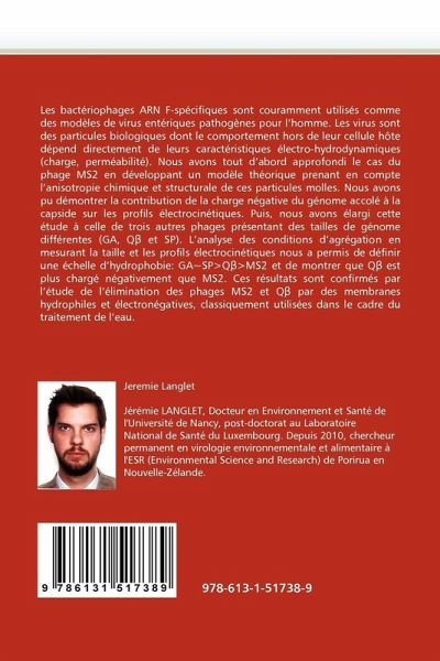 Les bactériophages ARN F-spécifiques sont couramment utilisés comme des modèles de virus entériques pathogènes pour l homme. Les virus sont des particules biologiques dont le comportement hors de leur cellule hôte dépend directement de leurs caractéristiques électro-hydrodynamiques (charge, perméabilité). Nous avons tout d abord approfondi le cas du phage MS2 en développant un modèle théorique prenant en compte l anisotropie chimique et structurale de ces particules molles. Nous avons pu démontrer la contribution de la charge négative du génome accolé à la capside sur les profils électrocinétiques. Puis, nous avons élargi cette étude à celle de trois autres phages présentant des tailles de génome différentes (GA, Q et SP). L analyse des conditions d agrégation en mesurant la taille et les profils électrocinétiques nous a permis de définir une échelle d hydrophobie: GA~SPQ MS2 et de montrer que Q est plus chargé négativement que MS2. Ces résultats sont confirmés par l étude de l élimination des phages MS2 et Q par des membranes hydrophiles et électronégatives, classiquement utilisées dans le cadre du traitement de l eau.