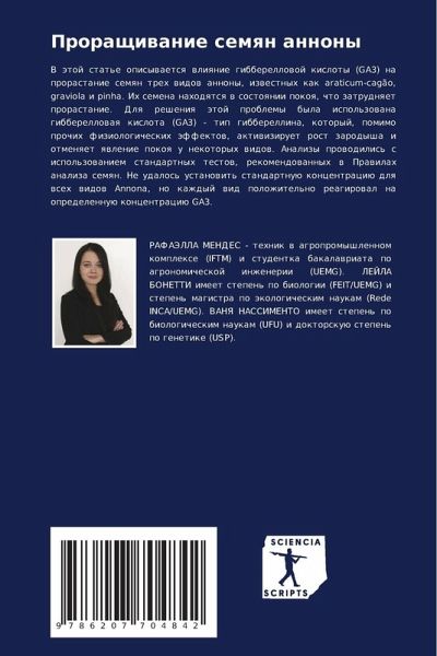V ätoj stat'e opisywaetsq wliqnie gibberellowoj kisloty (GA3) na prorastanie semqn treh widow annony, izwestnyh kak araticum-cagão, graviola i pinha. Ih semena nahodqtsq w sostoqnii pokoq, chto zatrudnqet prorastanie. Dlq resheniq ätoj problemy byla ispol'zowana gibberellowaq kislota (GA3) - tip gibberellina, kotoryj, pomimo prochih fiziologicheskih äffektow, aktiwiziruet rost zarodysha i otmenqet qwlenie pokoq u nekotoryh widow. Analizy prowodilis' s ispol'zowaniem standartnyh testow, rekomendowannyh w Prawilah analiza semqn. Ne udalos' ustanowit' standartnuü koncentraciü dlq wseh widow Annona, no kazhdyj wid polozhitel'no reagirowal na opredelennuü koncentraciü GA3.