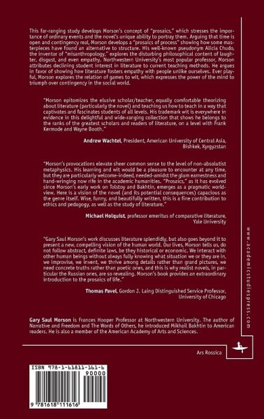 This far-ranging study develops Morson's concept of "prosaics," which stresses the importance of ordinary events and the novel's unique ability to portray them. Arguing that time is open and contingency real, Morson develops a "prosaics of process" showing how some masterpieces have found an alternative to structure. His well-known pseudonym Alicia Chudo, the inventor of "misanthropology," explores the disturbing philosophical content of laughter, disgust, and even empathy. Northwestern University's most popular professor, Morson attributes declining student interest in literature to current teaching methods. He argues in favor of showing how literature fosters empathy with people unlike ourselves. Ever playful, Morson explores the relation of games to wit, which expresses the power of the mind to triumph over contingency in the social world.