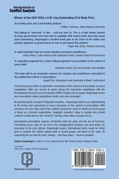Proscribing peace shows how the listing of armed groups as terrorists has made pre-negotiations harder and more prolonged. Drawing on fieldwork in Colombia during the negotiation with the FARC, Sophie Haspeslagh introduces the concept of â linguistic ceasefireâ which becomes a central pre-condition for the initiation of a peace process. -- .