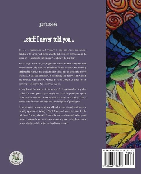 There's a randomness and whimsy to this collection, and anyone familiar with Linda, will expect exactly that. It is also represented in the cover art-a zentangle, aptly name 'Goldfish in the Garden'. Prose begins at a nurses' reunion where the usual entertainments slip away as Pathfinder Robyn amazes with a tale as disjointed as ever was told. Brooks relates the in-between stories, the ones best described as 'stuff I never told you.' Walking down an Adelaide street carrying a box and kicking a hammer in an effort to carry the things left behind by removalists. A patient Indian Postmaster's hilarious explanation of the parcel post system to an insistent customer. There are memories of a muddy creek, a barbed wire fence and the time she was maid for a day at an elegant mansion in leafy upper-crust Sydney's North Shore. Untold stories from nursing days. A top-lofty son is embarrassed by his gentle mother's dementia and receives a lesson in grace. A vigilante tenant prunes a hedge and the neighbourhood is not amused.