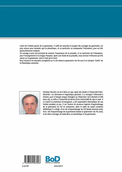 Cet ouvrage a pour but principal de montrer l'importance de la prosodie, et en particulier de l'intonation, pour l'enseignement et la langue française. Après une étude de la prosodie, nous verrons l'influence qu'elle exerce sur la grammaire, tant à l'oral qu'à l'écrit.