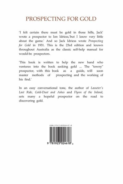 'I felt certain there must be gold in those hills, Jack', wrote a prospector to Ion Idriess, 'but I know very little about the game.' And so Jack Idriess wrote Prospecting for Gold in 1931. This is the 21st edition and known throughout Australia as the classic self-help manual for would-be prospectors. This book is written to help the new hand who ventures into the bush seeking gold... The "towny" prospector, with this book as a guide, will soon master methods of prospecting and the working of his find. In an easy conversational tone, the author of Lasseter's Last Ride, Gold-Dust and Ashes and Flynn of the Inland sets many a hopeful prospector on the road to discovering gold.