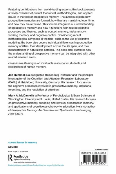 Jan Rummel is a designated Heisenberg Professor and the principal investigator of the Cognition and Attention Regulation Laboratory (CARL) at Heidelberg University, Germany. His research focuses on the cognitive processes involved in prospective memory, intentional forgetting, and the regulation of attention. Mark A. McDaniel is a Professor of Psychological & Brain Sciences at Washington University in St. Louis, United States. His research focuses on prospective memory, encoding and retrieval processes in memory, and applications of cognitive psychology to education. He is co-author of Prospective Memory: An Overview and Synthesis of an Emerging Field (2007).