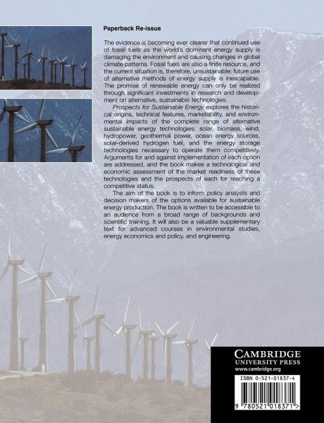 Fossil fuels are a finite resource, and their continued use as the world's dominant energy supply is damaging the environment. Future use of alternative methods of energy supply is inescapable, and this book explores the historical origins, technical features, marketability, and environmental impacts of the complete range of sustainable energy technologies: solar, biomass, wind, hydropower, geothermal power, ocean-energy sources, solar-derived hydrogen fuel, and energy storage. The aim is to inform policy analysts and decision makers of the options available for sustainable energy production. The book is therefore written so as to be accessible to an audience from a broad range of backgrounds and scientific training. It will also be a valuable supplementary text for advanced courses in environmental studies, energy economics and policy, and engineering.