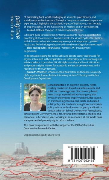'A brilliant guide to transforming informal assets into financial opportunities benefiting all those involved. Panaritis breaks the vicious cycle of frustration with informal real estate presenting a new practical approach, proven results, and fresh thinking on how to add value by creating value. A must read.' -Eleni Tsakopoulos, President, AKT Development Corporation