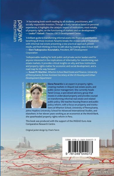 'A brilliant guide to transforming informal assets into financial opportunities benefiting all those involved. Panaritis breaks the vicious cycle of frustration with informal real estate presenting a new practical approach, proven results, and fresh thinking on how to add value by creating value. A must read.' -Eleni Tsakopoulos, President, AKT Development Corporation