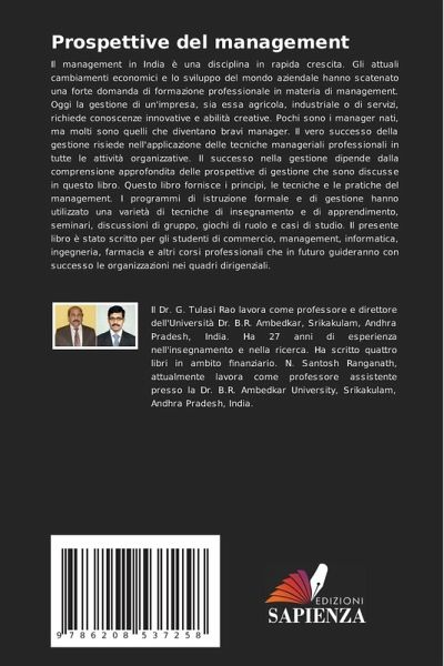 Il management in India è una disciplina in rapida crescita. Gli attuali cambiamenti economici e lo sviluppo del mondo aziendale hanno scatenato una forte domanda di formazione professionale in materia di management. Oggi la gestione di un'impresa, sia essa agricola, industriale o di servizi, richiede conoscenze innovative e abilità creative. Pochi sono i manager nati, ma molti sono quelli che diventano bravi manager. Il vero successo della gestione risiede nell'applicazione delle tecniche manageriali professionali in tutte le attività organizzative. Il successo nella gestione dipende dalla comprensione approfondita delle prospettive di gestione che sono discusse in questo libro. Questo libro fornisce i principi, le tecniche e le pratiche del management. I programmi di istruzione formale e di gestione hanno utilizzato una varietà di tecniche di insegnamento e di apprendimento, seminari, discussioni di gruppo, giochi di ruolo e casi di studio. Il presente libro è stato scritto per gli studenti di commercio, management, informatica, ingegneria, farmacia e altri corsi professionali che in futuro guideranno con successo le organizzazioni nei quadri dirigenziali.