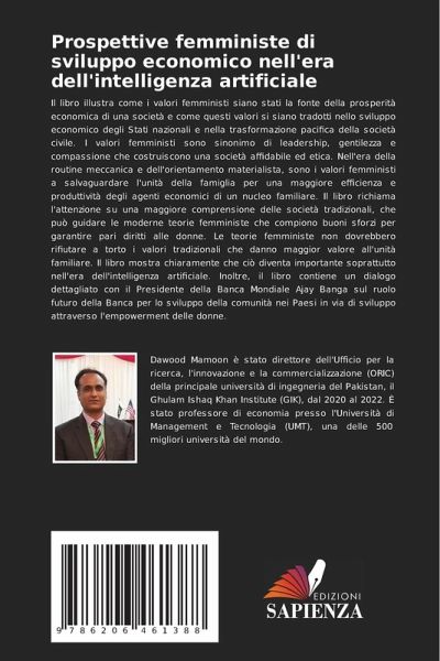 Il libro illustra come i valori femministi siano stati la fonte della prosperità economica di una società e come questi valori si siano tradotti nello sviluppo economico degli Stati nazionali e nella trasformazione pacifica della società civile. I valori femministi sono sinonimo di leadership, gentilezza e compassione che costruiscono una società affidabile ed etica. Nell'era della routine meccanica e dell'orientamento materialista, sono i valori femministi a salvaguardare l'unità della famiglia per una maggiore efficienza e produttività degli agenti economici di un nucleo familiare. Il libro richiama l'attenzione su una maggiore comprensione delle società tradizionali, che può guidare le moderne teorie femministe che compiono buoni sforzi per garantire pari diritti alle donne. Le teorie femministe non dovrebbero rifiutare a torto i valori tradizionali che danno maggior valore all'unità familiare. Il libro mostra chiaramente che ciò diventa importante soprattutto nell'era dell'intelligenza artificiale. Inoltre, il libro contiene un dialogo dettagliato con il Presidente della Banca Mondiale Ajay Banga sul ruolo futuro della Banca per lo sviluppo della comunità nei Paesi in via di sviluppo attraverso l'empowerment delle donne.