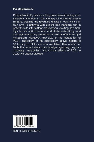 Although prostaglandin El (PGE ) has been clinically available for a long 1 time, only in recent years has its effectiveness in peripheral arterial occlusive disease been confirmed in controlled studies. Not surprisingly, the favour able results achieved both in patients with critical limb ischaemia and in those with intermittent claudication has stimulated research activities into the clinical pharmacology of this prostaglandin. As a consequence of these efforts, exciting new findings have revealed that PGE has anti thrombotic , endothelium-stabilizing and leucocyte-stabi 1 lizing properties as well as effects on lipid metabolism, all of which, quite apart from its well-known anti-aggregating and vasodilator effects, may add to the clinical efficacy of the substance. New data have also been gathered on the metabolism of PGE most b notably the detection of 13,14-dihydro-PGE a metabolite which was b recently isolated in humans following the administration of PGE . Being 1 biologically active, the pharmacodynamic spectrum of 13,14-dihydro-PGE 1 very closely resembles that of PGE . This finding may help to explain the 1 efficacy of PGE despite its rapid metabolization when given intravenously.