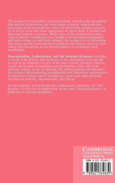 This study looks at the way the products of arachidonic acid metabolism are active both in normal and abnormal immune responses. While some of the fundamental issues such as whether lymphocytes are capable of producing prostaglandins and leukotrienes are still hotly debated, the evidence is overwhelming that many specific immunological problems and disease states are associated with alterations in the normal balance of arachidonic acid metabolism. This book provides a review of the history and chemistry of the arachidonic acid cascade as well as an exhaustive survey of the literature concerning the interaction of arachidonic acid metabolites with cells of the immune system. The author also presents and discusses the evidence demonstrating prostaglandin and leukotriene participation in response to injury and in malignancy, tissue and organ rejection, rheumatoid arthritis, autoimmunity and allergy.