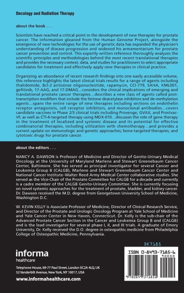 The Molecular Pathogenesis and Pathophysiology of Prostate Cancer. Targeted Therapies for Cancer: Definitions and Attributes. Novel Biomarkers for Disease Diagnosis, Prognosis, and Prediction. The Endothelin Pathway and Its Modulation in Prostate Cancer. Targeting Extracellular Molecules in Prostate Cancer-Mechanisms to Inhibit Entry into the Cell-Signaling Abyss. Immunologic Approaches to Prostate Cancer. Gene Therapy and Novel Clinical Trial Design. Angiogenesis Inhibitors in Prostate Cancer. What Antisense Oligonucleotides Have Promise in Prostate Cancer. Novel Approaches to Androgen Receptor Blockade. Can Post-Transcription Modifiers Change the Course of Prostate Cancer?. Telomere Targeting Agents. Expanding the Role of EGFR Inhibitors in Prostate Cancer. Bone-Directed Therapy in Prostate Cancer: Rationale and Novel Approaches. Inhibiting the Proteasome in Advanced Prostate Cancer. Hsp90: A Target for Prostate Cancer Therapy. Vitamin D Analogs and Their Role in Prostate Cancer. Other Novel Therapies. Molecular Imaging, Clinical Trial Design, and the Development of Emerging Therapies for Metastatic Prostate Cancer