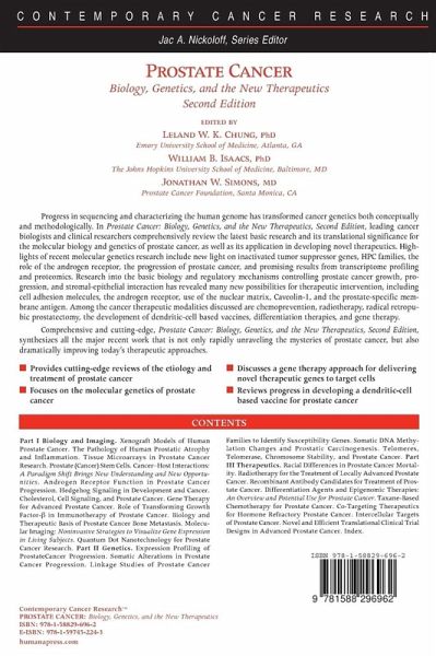 Prostate Cancer: Biology, Genetics, and the New Therapeutics, Second Edition, provides readers with a general reference for prostate cancer from prevention to therapy and will be of value to clinicians, scientists, and administrators who strive to solve the cancer problem.