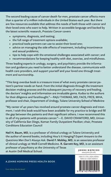 An illuminating guide for those newly diagnosed with prostate cancer as well as their partners and caregivers--one filled with extensive details about diagnosis, treatments, and tips for thriving. The second leading cause of cancer death for men, prostate cancer affects more than a quarter of a million individuals in the United States each year. Most men with prostate cancer will go through the journey from diagnosis through treatment and beyond with a partner and family members by their side. But there are few resources available that address the needs of both those with cancer and their loved ones who want to help. Written in accessible language and backed by the latest scientific research, Prostate Cancer covers - symptoms, diagnosis, and testing; - the full range of treatment options available; - practical tools partners can use to assist their loved one; - advice on managing the side effects of treatment, including incontinence and sexual problems; - tips to help cope with the emotional challenges associated with cancer; - recommendations for keeping healthy with diet, exercise, and mindfulness; and - insights into insurance issues. With three leading experts in urology, surgery, and psychiatry as its coauthors, Prostate Cancer provides the information and guidance you need to better understand the disease, communicate with health care providers, and support yourself and your loved one through treatment and survivorship.