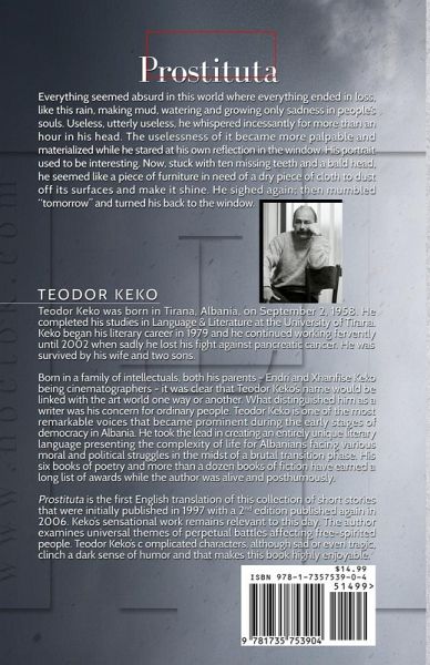 Prostituta is a magnificent collection of stories by celebrated Albanian writer, Teodor Keko. This is the first book of Teodor Keko translated into English. Written between the late '80s to mid '90s, these seventeen tales continue to remain relevant to this day. They display Keko's complex world and unrivaled ability to see and seek the truth to help mankind learn from past mistakes. Keko's stories range from humorous trips into strange existences to bittersweet tales of loss, from oppressive drills in utter despair to a lavish selection of human madness with a side of dark humor. Prostituta in its entirety offers a glimpse into the beautiful mind of a masterful writer whose ability to interpret the human struggles and moments of light will get any reader's attention.