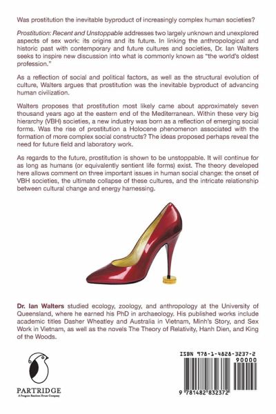 Was prostitution the inevitable byproduct of increasingly complex human societies? Prostitution: Recent and Unstoppable addresses two largely unknown and unexplored aspects of sex work: its origins and its future. In linking the anthropological and historic past with contemporary and future cultures and societies, Dr. Ian Walters seeks to inspire new discussion into what is commonly known as "the world's oldest profession." As a reflection of social and political factors, as well as the structural evolution of culture, Walters argues that prostitution was the inevitable byproduct of advancing human civilization. Walters proposes that prostitution most likely came about approximately seven thousand years ago at the eastern end of the Mediterranean. Within these very big hierarchy (VBH) societies, a new industry was born as a reflection of emerging social forms. Was the rise of prostitution a Holocene phenomenon associated with the formation of more complex social constructs? The ideas proposed perhaps reveal the need for future field and laboratory work. As regards to the future, prostitution is shown to be unstoppable. It will continue for as long as humans (or equivalently sentient life forms) exist. The theory developed here allows comment on three important issues in human social change: the onset of VBH societies, the ultimate collapse of these cultures, and the intricate relationship between cultural change and energy harnessing.