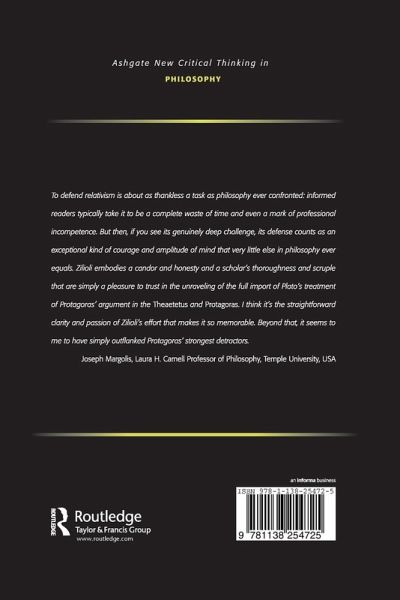 'To defend relativism is about as thankless a task as philosophy ever confronted: informed readers typically take it to be a complete waste of time and even a mark of professional incompetence. But then, if you see its genuinely deep challenge, its defense counts as an exceptional kind of courage and amplitude of mind that very little else in philosophy ever equals. Zilioli embodies a candor and honesty and a scholar's thoroughness and scruple that are simply a pleasure to trust in the unraveling of the full import of Plato's treatment of Protagoras's argument in the Theaetetus and Protagoras. I think it's the straightforward clarity and passion of Zilioli's effort that makes it so memorable. Beyond that, it seems to me to have simply outflanked Protagoras's strongest detractors.' Joseph Margolis, Temple University, USA