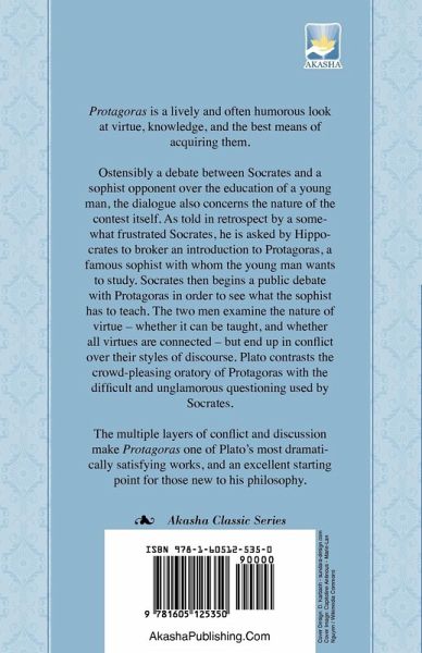 Protagoras is a lively and often humorous look at virtue, knowledge, and the best means of acquiring them. Ostensibly a debate between Socrates and a sophist opponent over the education of a young man, the dialogue also concerns the nature of the contest itself. As told in retrospect by a somewhat frustrated Socrates, he is asked by Hippocrates to broker an introduction to Protagoras, a famous sophist with whom the young man wants to study. Socrates then begins a public debate with Protagoras in order to see what the sophist has to teach. The two men examine the nature of virtue - whether it can be taught, and whether all virtues are connected - but end up in conflict over their styles of discourse. Plato contrasts the crowd-pleasing oratory of Protagoras with the difficult and unglamorous questioning used by Socrates. The multiple layers of conflict and discussion make Protagorus one of Plato's most dramatically satisfying works, and an excellent starting point for those new to his philosophy.