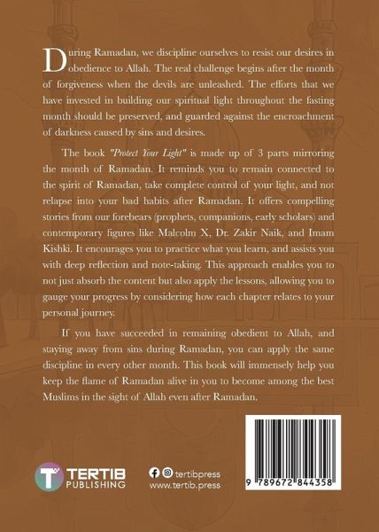 During Ramadan, we discipline ourselves to resist our desires in obedience to Allah. The real challenge begins after the month of forgiveness when the devils are unleashed. The efforts that we have invested in building our spiritual light throughout the fasting month should be preserved, and guarded against the encroachment of darkness caused by sins and desires. The book "Potect Your Light" is made up of 3 parts mirroring the month of Ramadan. It reminds you to remain connected to the spirit of Ramadan, take complete control of your light, and not relapse into your bad habits after Ramadan. It offers compelling stories from our forebears (prophets, companions, early scholars) and contemporary figures like Malcolm X, Dr. Zakir Naik, and Imam Kishki. It encourages you to practice what you learn, and assists you with deep reflection and note-taking. This approach enables you to not just absorb the content but also apply the lessons, allowing you to gauge your progress by considering how each chapter relates to your personal journey. If you have succeeded in remaining obedient to Allah, and staying away from sins during Ramadan, you can apply the same discipline in every other month. This book will immensely help you keep the flame of Ramadan alive in you to become among the best Muslims in the sight of Allah even after Ramadan.