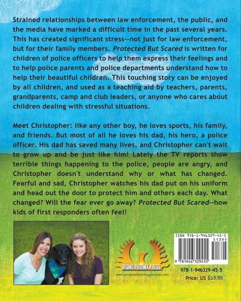Strained relationships between law enforcement, the public, and the media have marked a difficult time in the past several years. This has created significant stress--not just for law enforcement, but for their family members. "Protected But Scared" is written for children of police officers to help them express their feelings and to help police parents and police departments understand how to help their beautiful children. This touching story can be enjoyed by all children, and used as a teaching aid by teachers, parents, grandparents, camp and club leaders, or anyone who cares about children dealing with stressful situations. Meet Christopher: like any other boy, he loves sports, his family, and friends. But most of all he loves his dad, his hero, a police officer. His dad has saved many lives, and Christopher can't wait to grow up and be just like him! Lately the TV reports show terrible things happening to the police, people are angry, and Christopher doesn't understand why or what has changed. Fearful and sad, Christopher watches his dad put on his uniform and head out the door to protect him and others each day. What changed? Will the fear ever go away? Protected But Scared--how kids of first responders often feel!