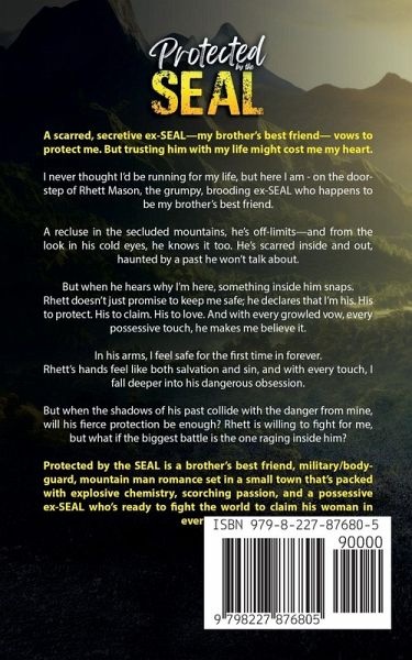 A scarred, secretive ex-SEAL-my brother's best friend- vows to protect me. But trusting him with my life might cost me my heart. I never thought I'd be running for my life, but here I am - on the doorstep of Rhett Mason, the grumpy, brooding ex-SEAL who happens to be my brother's best friend. A recluse in the secluded mountains, he's off-limits-and from the look in his cold eyes, he knows it too. He's scarred inside and out, haunted by a past he won't talk about. But when he hears why I'm here, something inside him snaps. Rhett doesn't just promise to keep me safe; he declares that I'm his. His to protect. His to claim. His to love. And with every growled vow, every possessive touch, he makes me believe it. In his arms, I feel safe for the first time in forever. Rhett's hands feel like both salvation and sin, and with every touch, I fall deeper into his dangerous obsession. But when the shadows of his past collide with the danger from mine, will his fierce protection be enough? Rhett is willing to fight for me, but what if the biggest battle is the one raging inside him? Protected by the SEAL is a brother's best friend, military/bodyguard, mountain man romance set in a small town that's packed with explosive chemistry, scorching passion, and a possessive ex-SEAL who's ready to fight the world to claim his woman in every way.