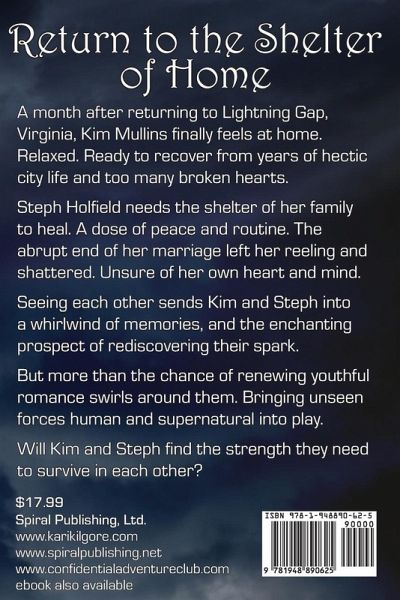 Return to the Shelter of Home A month after returning to Lightning Gap, Virginia, Kim Mullins finally feels at home. Relaxed. Ready to recover from years of hectic city life and too many broken hearts. Steph Holfield needs the shelter of her family to heal. A dose of peace and routine. The abrupt end of her marriage left her reeling and shattered. Unsure of her own heart and mind. Seeing each other sends Kim and Steph into a whirlwind of memories, and the enchanting prospect of rediscovering their spark. But more than the chance of renewing youthful romance swirls around them. Bringing unseen…mehr