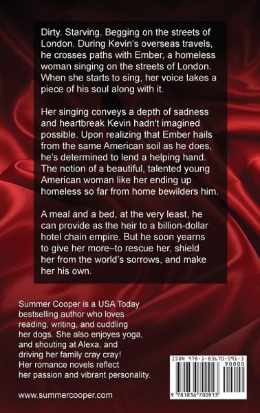 Enjoy this steamy contemporary series by USA Today Bestselling dark billionaire romance author Summer Cooper! Dirty. Starving. Begging on the streets of London. During Kevin's overseas travels, he crosses paths with Ember, a homeless woman singing on the streets of London. When she starts to sing, her voice takes a piece of his soul along with it. Her singing conveys a depth of sadness and heartbreak Kevin hadn't imagined possible. Upon realizing that Ember hails from the same American soil as he does, he's determined to lend a helping hand. The notion of a beautiful, talented young American woman like her ending up homeless so far from home bewilders him. A meal and a bed, at the very least, he can provide as the heir to a billion-dollar hotel chain empire. But he soon yearns to give her more-to rescue her, shield her from the world's sorrows, and make her his own. Read the whole series now (can be read in any order!): 1. Winning Her 2. Claiming Her 3. Protecting Her Other books related to this series (read the following in order): 1. Dark Desire 2. Dark Rules 3. Dark Secret 4. Dark Time 5. Dark Truth This is an adult only steamy contemporary romance, appealing to readers who love fated mates, billionaire romance, forbidden and sizzling hot romances with a twist. Perfect for fans of Julia Kent, Roxy Sloane, Claire Kingsley, K.Bromberg and Sierra Rose. This is the large print version, created specifically for low-sight readers. Enjoy!