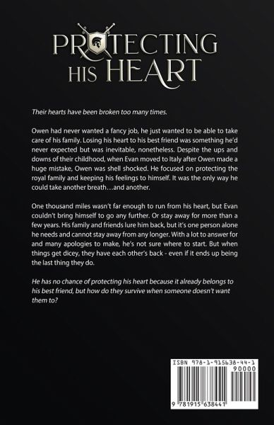 Their hearts have been broken too many times. Owen had never wanted a fancy job, he just wanted to be able to take care of his family. Losing his heart to his best friend was something he'd never expected but was inevitable, nonetheless. Despite the ups and downs of their childhood, when Evan moved to Italy after Owen made a huge mistake, Owen was shell shocked. He focused on protecting the royal family and keeping his feelings to himself. It was the only way he could take another breath...and another. One thousand miles wasn't far enough to run from his heart, but Evan couldn't bring himself to go any further. Or stay away for more than a few years. His family and friends lure him back, but it's one person alone he needs and cannot stay away from any longer. With a lot to answer for and many apologies to make, he's not sure where to start. But when things get dicey, they have each other's back - even if it ends up being the last thing they do. He has no chance of protecting his heart because it already belongs to his best friend, but how do they survive when someone doesn't want them to? Protecting his Heart is a kinky, second chance romance with a grieving bodyguard and a childhood best friend who knows him better than anyone else.