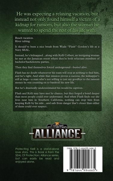 He was expecting a relaxing vacation, but instead not only found himself a victim of a kidnap for ransom, but also the woman he wanted to spend the rest of his life with. Beach vacation. River tubing. It should've been a nice break from Wade "Flash" Gordon's life as a Navy SEAL. Instead, he's kidnapped...along with Kelli Colbert, an intriguing woman he met at the Jamaican resort where they're both reluctant members of bachelor/bachelorette parties. Then they find themselves forced underground-buried alive. Flash has no doubt whatsoever his team will stop at nothing to find him, and he's right. And while that mission proves a success, the kidnapper's still at large-a man who's not willing to just say goodbye to the ransom money he was counting on to bankroll his new life. But he's drastically underestimated his would-be captives. Flash and Kelli may have met by chance, but they forged a bond deeper than most people could ever understand. And when Flash finds out she lives near him in Southern California, nothing can stop him from keeping Kelli by his side...and safe from danger that's closer than either of them could ever suspect. **Protecting Kelli is the 6th book in the SEAL of Protection: Alliance Series. Each book is a stand-alone, with no cliffhanger endings.