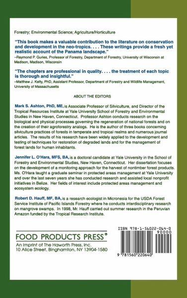 ContentsForeword (Mirei E. Endara) * Preface (Mark S. Ashton, Jennifer L. O?Hara, and Robert D. Hauff) * An Introduction: The Panama Canal Watershed Area (Jennifer L. O?Hara) * Small Farmer Migration and the Agroforestry Alternative in the Panama Canal Watershed (Luisa Camara-Cabrales) * Saccharum Spontaneum (Gramineae) in Panama: The Physiology and Ecology of Invasion (Bruce W. Hammond) * A Case Study Assessment of Agroforestry: The Panama Canal Watershed (Robert D. Hauff) * The Potential for Carbon Sequestration Projects as a Mechanism for Conserving Forests in the Panama Canal Watershed (Nadine Block) * Rehabilitation of Former U.S. Military Lands Bordering the Panama Canal (Claire M. Corcoran) * Sedimentation in the Panama Canal Watershed (Maya Loewenberg) * Will the Goals Be Met? An Examination of AIR?s General and Regional Plans with Respect to Protected Areas Within the Inter-Oceanic Region, Panama (Sara N. Whitney) * Balancing Conservation and Economics: The Development of an Ecotourism Plan for Panama (Katherine Lieberknecht, Jennifer Papzian, and Andrea McQuay) * Mutual Incomprehension or Selective Inattention? Creating Capacity for Public Participation in Natural Resource Management in Panama (Benjamin Gardner) * Working Toward Effective Policy Processes in Panama Canal Watershed National Parks (Keely B. Maxwell and Christopher J. Williams) * The Prospects for Integrated Watershed Management in the Panama Canal Watershed (H. Bradley Kahn) * Field Trips in Natural Resource Professional Education: The Panama Case and Recommendations (Tim W. Clark and Mark S. Ashton) * Panama Canal Watershed: A Synthesis (Mark S. Ashton and Jennifer L. O?Hara) * Index * Reference Notes Included