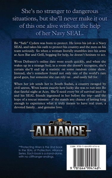 She's no stranger to dangerous situations, but she'll never make it out of this one alive without the help of her Navy SEAL. Bo "Safe" Cyders was born to protect. He loves his job as a Navy SEAL and takes his oath to protect his country and the men on his team seriously. So when a woman literally stumbles into his arms at Aces Bar and Grill, begging for help, he doesn't hesitate to act. Wren Defranco's online date went south quickly, and when she wakes up in a strange bed, in a room she doesn't recognize, she's certain she'll end up a statistic on some random crime show. Instead, she's somehow found not only one of the world's rare good guys, but someone she can rely on...and easily fall for. When her job sends her to South Sudan, a country ravaged by civil unrest, Wren learns exactly how lucky she was to run into Bo that fateful night at Aces. She'll need every bit of survival intel he and his SEAL friends ingrained in her before the trip-and the hope of a rescue mission-if she stands any chance of lasting long enough to experience what it truly means to have real trust, a devoted family...and genuine love. **Protecting Wren is the 2nd book in the SEAL of Protection: Alliance Series. Each book is a stand-alone, with no cliffhanger endings.