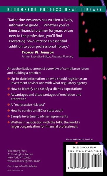This is the benchmark book for building client relationships, growing a practice, and avoiding litigation--written in association with the world's leading organization for financial services professionals. Audience: Broker-dealers and their home-office personnel, registered reps, accountants, tax advisers, insurance agents and insurance companies, wire houses, fee and commission planners, attorneys, trust officers, estate planners, and development officers in planned-giving departments. As investors gravitate toward no-load mutual funds and do-it-yourself investing through discount brokers, professionals are being squeezed by competition, consumer wariness, and tighter enforcement by the SEC, NASD, and state securities regulators. This book addresses these challenges, helping anyone offering financial advice to be more competitive, build client loyalty, and avoid the liabilites that come with managing someone's money in today's complex investment environment. How to offer better service, comply with key regulations, maintain vital records with a minimum of paperwork, and protect a business from malpractice claims.