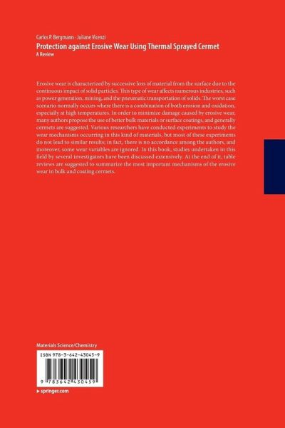 Erosive wear is characterized by successive loss of material from the surface due to the continuous impact of solid particles. This type of wear affects numerous industries, such as power generation, mining, and the pneumatic transportation of solids. The worst case scenario normally occurs where there is a combination of both erosion and oxidation, especially at high temperatures. In order to minimize damage caused by erosive wear, many authors propose the use of better bulk materials or surface coatings, and generally cermets are suggested. Various researchers have conducted experiments to study the wear mechanisms occurring in this kind of materials, but most of these experiments do not lead to similar results; in fact, there is no accordance among the authors, and moreover, some wear variables are ignored. In this book, studies undertaken in this field by several investigators have been discussed extensively. At the end of it, table reviews are suggested to summarize the mostimportant mechanisms of the erosive wear in bulk and coating cermets.