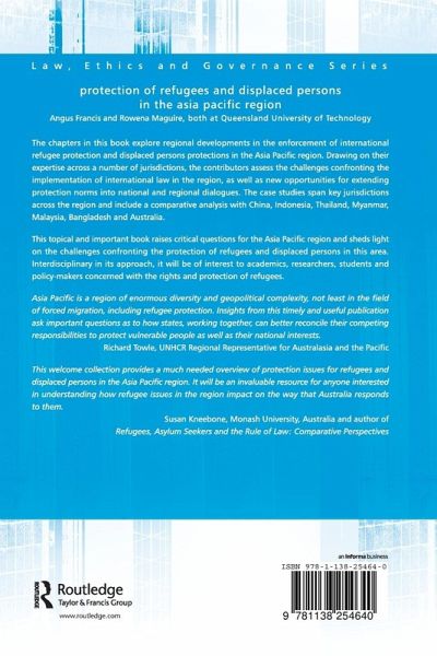 This book explores regional developments in the enforcement of international refugee protection and displaced persons protection in the Asia Pacific region. Drawing on their expertise across a number of jurisdictions, the contributors assess the challenges confronting the implementation of international law in the region, as well as new opportunities for extending protection norms into national and regional dialogues. The case studies span key jurisdictions across the region and include a comparative analysis with China, Indonesia, Thailand, Myanmar, Malaysia, Bangladesh and Australia.