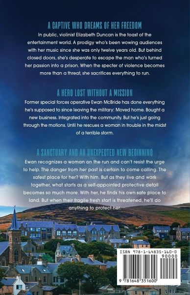A captive who dreams of her freedom In public, violinist Elizabeth Duncan is the toast of the entertainment world. A prodigy who's been wowing audiences with her music since she was only twelve years old. But behind closed doors, she's desperate to escape the man who's turned her passion into a prison. When the specter of violence becomes more than a threat, she sacrifices everything to run. A hero lost without a mission Former special forces operative Ewan McBride has done everything he's supposed to since leaving the military: Moved home. Bought a new business. Integrated into the community. But he's just going through the motions. Until he rescues a woman in trouble in the midst of a terrible storm. A sanctuary and an unexpected new beginning Ewan recognizes a woman on the run and can't resist the urge to help. The danger from her past is certain to come calling. The safest place for her? With him. But as they live and work together, what starts as a self-appointed protective detail becomes so much more. With her, he finds his own safe place to land. But when their fragile fresh start is threatened, he'll do anything to protect her.