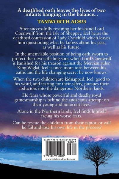 A deathbed oath leaves the lives of two infants hanging in the balance... Tamworth AD833 After successfully rescuing her husband Lord Coenwulf from the Isle of Sheppey, Icel hears the deathbed confession of Lady Cynehild which leaves him questioning what he knows about his past, as well as his future. In the unenviable position of being oath sworn to protect their two atheling sons when Lord Coenwulf is banished for his treason against the Mercian ruler, King Wiglaf, Icel is once more torn between his oaths and the life changing secret he now knows. When the two children are kidnapped, Icel, good to his word, and fearing for their safety, pursues their abductors into the dangerous Northern lands. He fears whose powerful and deadly royal gamesmanship is behind the audacious attempt on their young and innocent lives. Alone in the Northern lands, Icel finds himself facing his worse fears. Can he rescue the children from their captor, or will he fail and lose his own life in the process?