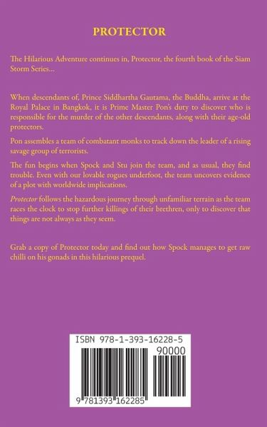 The hilarious adventures continue in Protector, the final book of the Siam Storm Series… When descendants of, Prince Siddhartha Gautama, the Buddha, arrive at the Royal Palace in Bangkok, it is Prime Master Pon's duty to discover who is responsible for the murder of the other descendants, along with their age-old protectors. Pon assembles a team of combatant monks to track down the leader of a rising savage group of terrorists. The fun begins when Spock and Stu join the team, and as usual, they find trouble. Even with our annoying lovable rogues underfoot, the team uncovers evidence of a plot…mehr