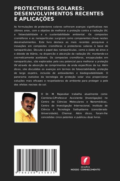 As formulações de protectores solares sofreram avanços significativos nos últimos anos, com o objetivo de melhorar a proteção contra a radiação UV, a fotoestabilidade e a sustentabilidade ambiental. Os compostos cromóforos e as nanopartículas surgiram como componentes-chave nestes desenvolvimentos. Este livro destaca as mais recentes pesquisas e inovações em compostos cromóforos e protectores solares à base de nanopartículas. Discute o papel das nanopartículas, como o óxido de zinco e o dióxido de titânio, na dispersão e absorção da radiação UV, mantendo-se cosmeticamente aceitáveis. Os compostos cromóforos, encapsulados em nanopartículas, são explorados pelo seu potencial para melhorar a proteção UV através da absorção de comprimentos de onda específicos da luz. Além disso, são discutidos os avanços em termos de fotoestabilidade, proteção de largo espetro, inclusão de antioxidantes e biodegradabilidade. O panorama evolutivo da tecnologia de proteção solar visa proporcionar soluções mais eficazes e respeitadoras do ambiente para proteger a pele dos efeitos nocivos do sol.