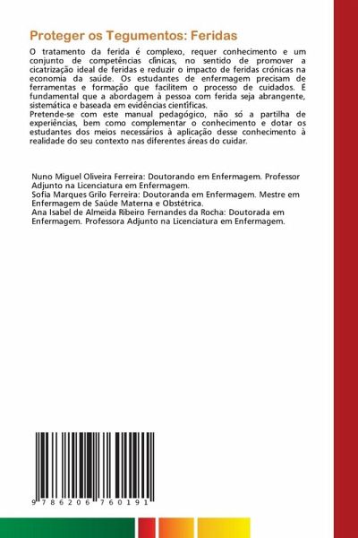 O tratamento da ferida e¿ complexo, requer conhecimento e um conjunto de compete¿ncias cli¿nicas, no sentido de promover a cicatrizac¿äo ideal de feridas e reduzir o impacto de feridas cro¿nicas na economia da sau¿de. Os estudantes de enfermagem precisam de ferramentas e formac¿äo que facilitem o processo de cuidados. E¿ fundamental que a abordagem ä pessoa com ferida seja abrangente, sistemätica e baseada em evide¿ncias cienti¿ficas.Pretende-se com este manual pedago¿gico, näo so¿ a partilha de experie¿ncias, bem como complementar o conhecimento e dotar os estudantes dos meios necessärios ä aplicac¿äo desse conhecimento ä realidade do seu contexto nas diferentes äreas do cuidar.