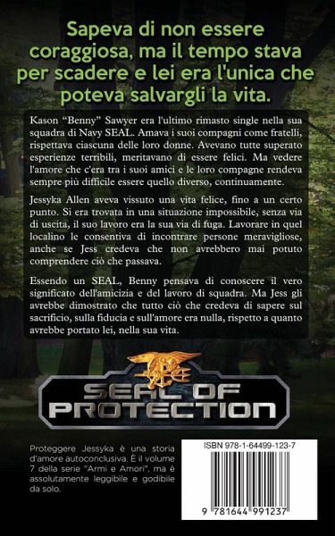 Kason "Benny" Sawyer era l'ultimo rimasto single nella sua squadra di Navy SEAL. Amava i suoi compagni come fratelli, rispettava ciascuna delle loro donne. Avevano tutte superato esperienze terribili, meritavano di essere felici. Ma vedere l'amore che c'era tra i suoi amici e le loro compagne rendeva sempre più difficile essere quello diverso, continuamente. Jessyka Allen aveva vissuto una vita felice, fino a un certo punto. Si era trovata in una situazione impossibile, senza via di uscita, il suo lavoro era la sua via di fuga. Lavorare in quel localino le consentiva di incontrare persone meravigliose, anche se Jess credeva che non avrebbero mai potuto comprendere ciò che passava. Essendo un SEAL, Benny pensava di conoscere il vero significato dell'amicizia e del lavoro di squadra. Ma Jess gli avrebbe dimostrato che tutto ciò che credeva di sapere sul sacrificio, sulla fiducia e sull'amore era nulla, rispetto a quanto avrebbe portato lei, nella sua vita. *Proteggere Jessyka racconta una storia autonoma e conclusiva. È il libro 7 della serie Armi e Amori, ma può essere letto piacevolmente anche da solo.