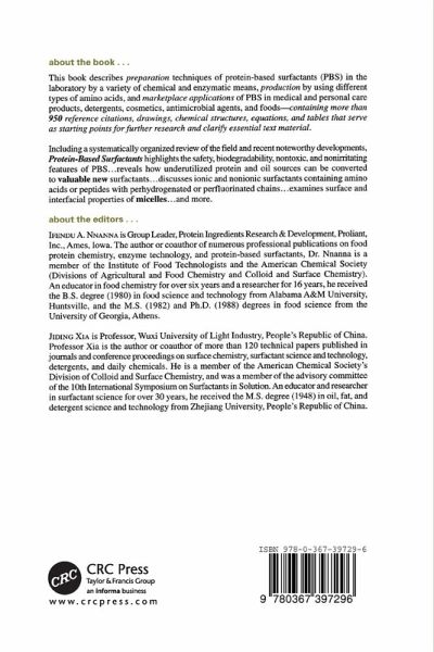 "Describes preparation techniques of protein-based surfactants (PBS) in the laboratory by a variety of chemical and enzymatic means, production by using different types of amino acids, and marketplace applications of PBS in medical and personal care products, detergents, cosmetics, antimicrobial agents, and foods."