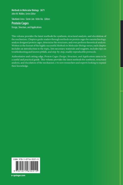 Coiled-coil Protein Origami: Design, Isolation and Characterization.- Artificial Protein Cages Assembled Via Gold Coordination.- Reassembly Design of Ferritin Cages.- Protein Cages and Nanostructures Constructed from Protein Nanobuilding Blocks.- Preparation of Cage-like Micellar Assemblies of Engineered Hemoproteins.- Fabrication of Protein Macromolecular Frameworks (PMFs) and Their Application in Catalytic Materials.- Iron Accumulation in Ferritin.- A Generalized Method for Metal Fixation in Horse Spleen L-Ferritin Cage.- Dual Modification of Artificial Protein Cage.- Modification and Production of Encapsulin.- Cryo-electron Microscopy of Protein Cages.- Time-resolved Small-angle X-Ray Scattering of Protein Cage Assembly.- Protein Cage-Stabilized Emulsions: Formulation and Characterization.- A Method to Investigate the Mechanism of Charge Transport across Bio-Molecular Junctions with Ferritin.- Potato Virus X Inactivation and Characterization.- Molecular Dynamics Simulation of Protein Cages.- Coarse-grained Models for Vault Normal Model Analysis.- Evaluating Anti-Tumor Immune Responses of Protein Nanoparticle-Based Cancer Vaccines.- Construction Protocol of Drug-Protein Cage Complexes for Drug Delivery System.- Protein Cage Relaxivity Measurement for Magnetic Resonance Imaging Contrast Agents.- Crystalline Biohybrid Materials Based on Protein Cages.- Production and Purification of Virus-like Particles by Transient Expression in Plants.- Laboratory Scale Production of Complex Proteins Using Charge Complimentary Nanoenvironments.